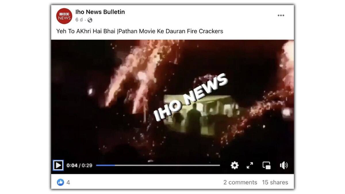 एक फेसबुक यूजर ने इस वीडियो को पोस्ट करते हुए लिखा, "ये तो आखिरी है भाई, पठान मूवी के दौरान पठाखे".