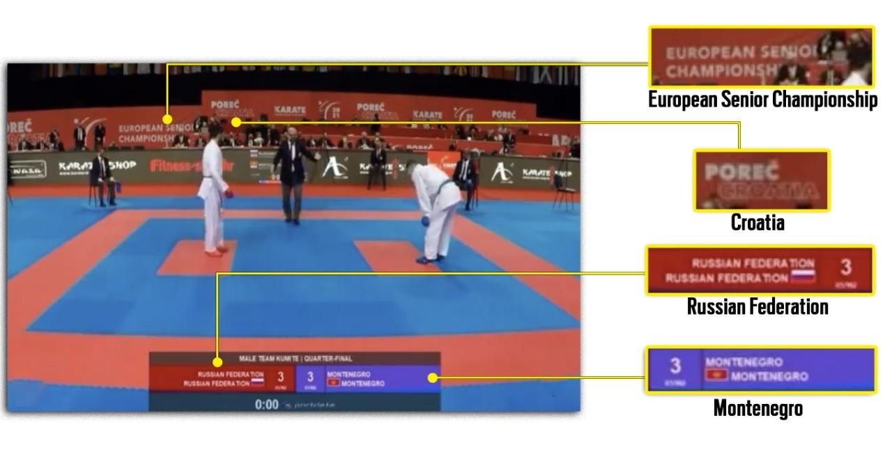 वायरल वीडियो को रिवर्स सर्च करने पर हमें पता चला कि इसे एक इंस्टाग्राम यूजर ने 21 मई 2021 को शेयर किया था. जहां वायरल वीडियो धुंधला है, वहीं ये वीडियो काफी स्पष्ट है. कराटे मैच के इस वीडियो में स्कोर के डिस्प्ले पर ‘रशियन फेडरेशन’ और ‘मॉन्टेनीग्रो’ लिखा देखा जा सकता है. साथ ही, जहां कराटे मैच चल रहा है, वहां लगे एक बैनर में ‘यूरोपियन सीनियर चैम्पियनशिप’ भी लिखा हुआ है.