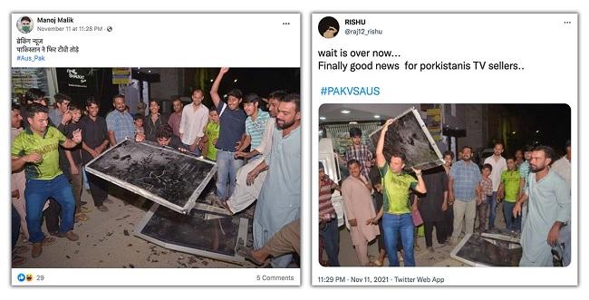 एक फेसबुक यूजर ने तस्वीर के साथ लिखा, "ब्रेकिंग न्यूज पाकिस्तान ने फिर टीवी तोड़े