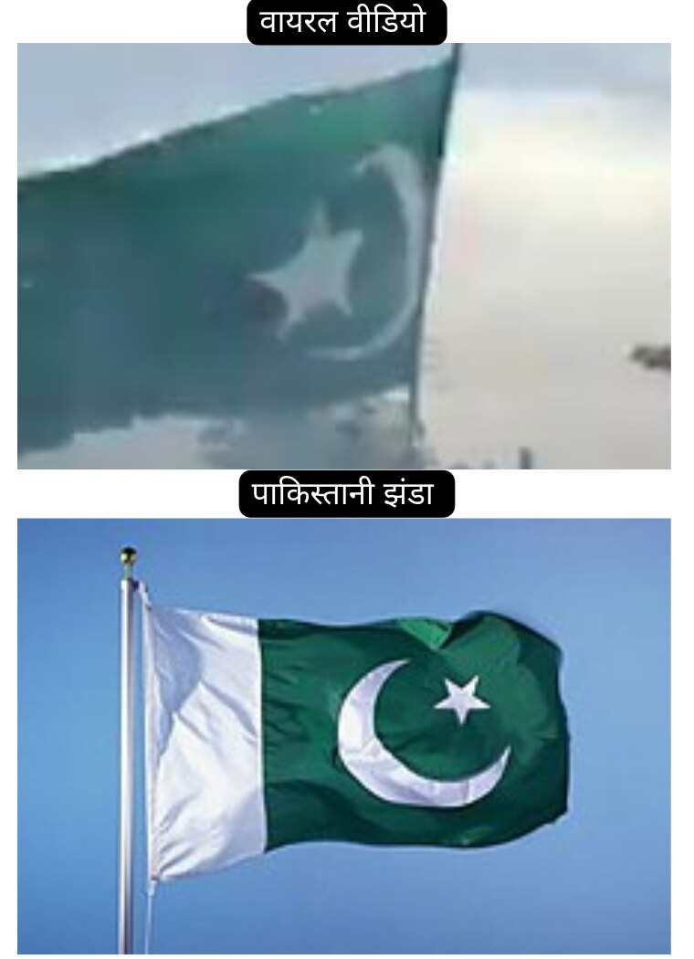 हमने वायरल वीडियो को ध्यान से देखा और पाया कि ये पाकिस्तानी झंडे से काफी अलग है. सबसे पहले, पाकिस्तान के झंडे में अर्धचंद्र और तारे का आकार काफी बड़ा होता है और ये झंडे के बीच में बने होते हैं. इसके अलावा, इसमें बाईं ओर एक सफेद रंग की पट्टी भी होती है.