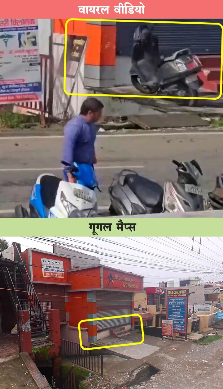 इसी तरह, गूगल मैप्स पर इस दुकान के सामने एक बाउंड्रीवॉल दिखती है, जो वायरल वीडियो की शुरुआत में नजर आ रही है.