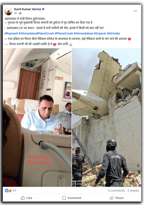 दावा ये किया जा रहा है कि ये विजय रूपाणी की आखिरी फोटो है और उसी विमान की है जो अहमदाबाद में क्रैश हुआ.