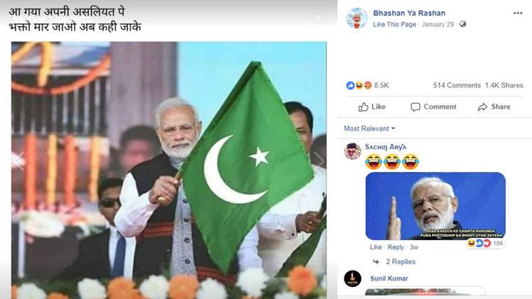 इस वायरल फोटो को फेसबुक के एक पेज 'भाषण या राशन' ने इसी साल 29 जनवरी को पोस्ट किया. पोस्ट में शीर्षक लिखा गया 'आ गए अपनी असलियत पर, भक्तों मर जाओ अब कहीं जाकर'. इस फोटो पर 8,500 से भी ज़्यादा लोगों ने अपनी प्रतिक्रियाएं दर्ज की हैं और लगभग 1400 लोगों ने इसे शेयर भी किया.