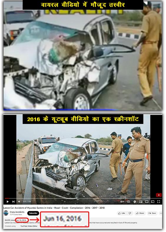 वीडियो में इस्तेमाल की गई दुर्घटनाग्रस्त कार की तस्वीर को रिवर्स सर्च करने पर ये हमें साल 2016 के एक यूट्यूब वीडियो में मिली. यहां बताया गया है कि ये भारत में हुए एक एक्सीडेंट का वीडियो है.