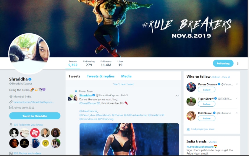 एक्ट्रेस श्रद्धा कपूर का आधिकारिक ट्विटर हैंडल @ShraddhaKapoor है और इस पर ब्लू टिक भी है जो इस अकाउंट के असल में श्रद्धा कपूर के होने की पुष्टि करता है. एक्ट्रेस के ट्वीट्स पर गौर करें तो उन्होंने बहुत कम मौकों पर ही राजनीति से जुड़ा कोई ट्वीट किया है.