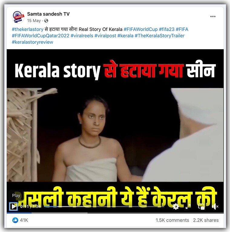 बीते कुछ महीनों में बॉलीवुड फिल्म 'द केरल स्टोरी' की खूब चर्चा हुई है. और अब एक वीडियो को इस फिल्म के साथ जोड़कर सोशल मीडिया पर खूब शेयर किया जा रहा है. इसे शेयर करने वाले कुछ लोगों की मानें तो ये 'दि केरल स्टोरी' फिल्म से हटाया गया एक सीन है. वीडियो पर लिखा है- "केरल स्टोरी से हटाया गया सीन". वहीं, नीचे लिखा है "असली कहानी ये हैं केरल की".