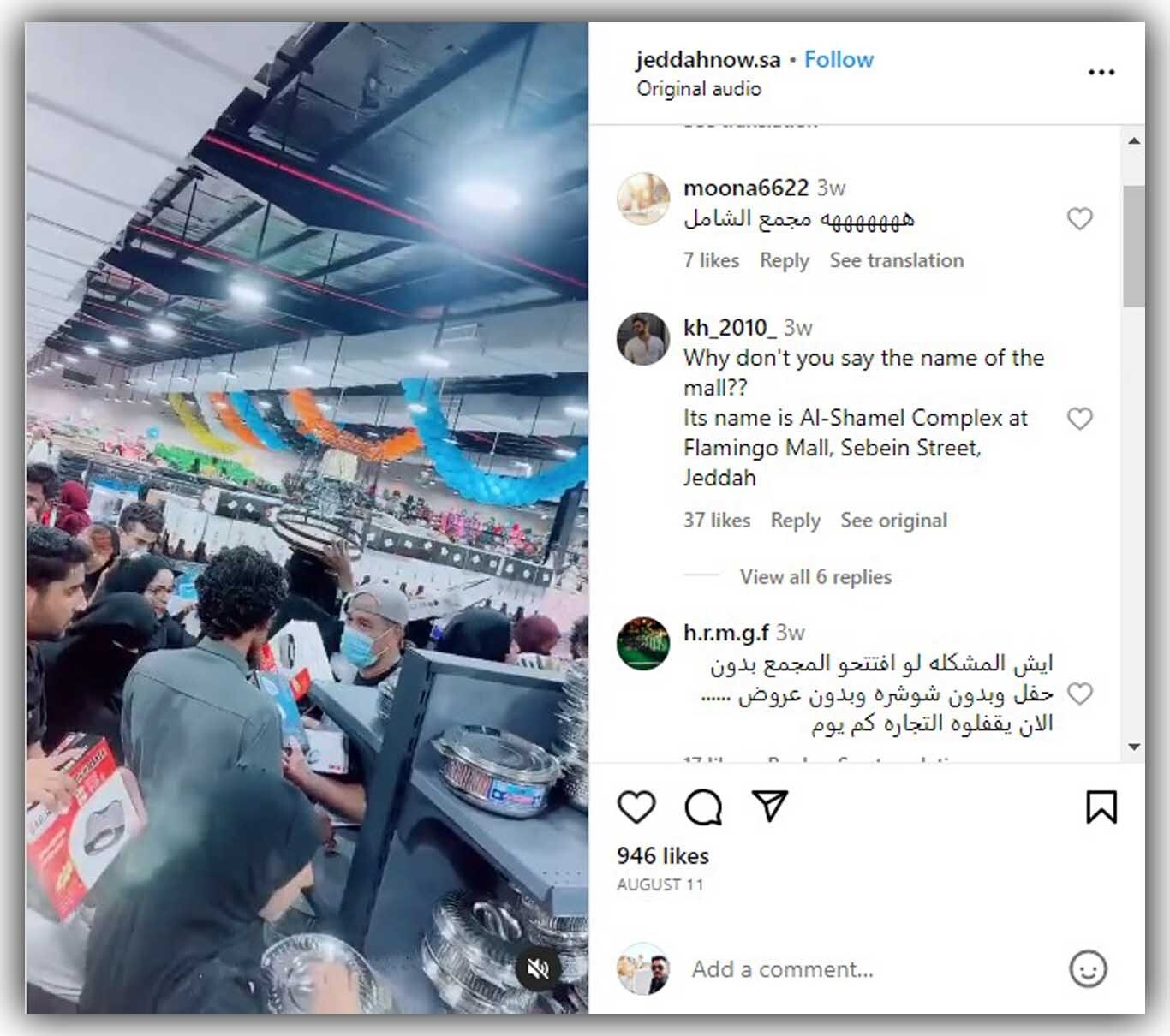 इसी पोस्ट के कमेंट सेक्शन में एक यूजर ने लिखा है कि यह वीडियो जेद्दाह के फ्लेमिंगो मॉल स्थित Al-Shamel स्टोर का है.