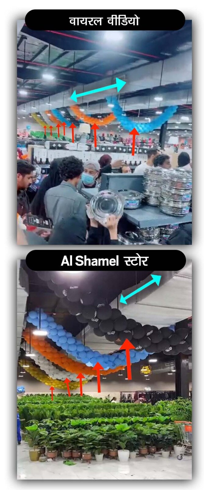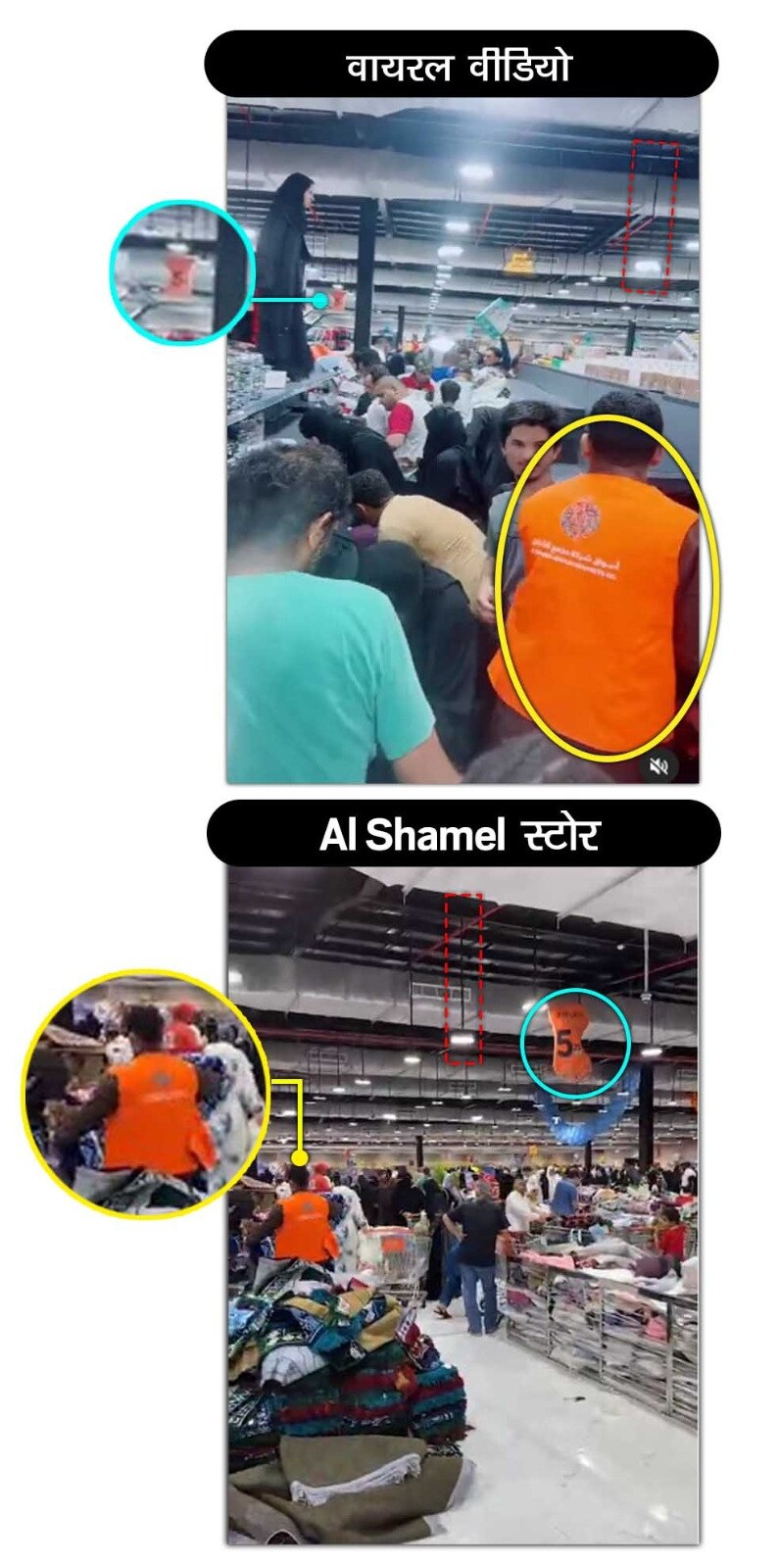 इसके बारे में थोड़ी खोजबीन करने पर हमें पता चला कि अल-शमिल सऊदी अरब की एक डिस्काउंट शॉपिंग स्टोर की चेन है. हमें इस स्टोर का इंस्टाग्राम पेज मिला. इस इंस्टाग्राम पेज पर 12 अगस्त, 2023 को स्टोर का एक वीडियो शेयर किया गया था. इस वीडियो को वायरल वीडियो से मिलाने पर स्पष्ट रूप से कहा जा सकता है कि दोनों एक ही जगह के हैं.