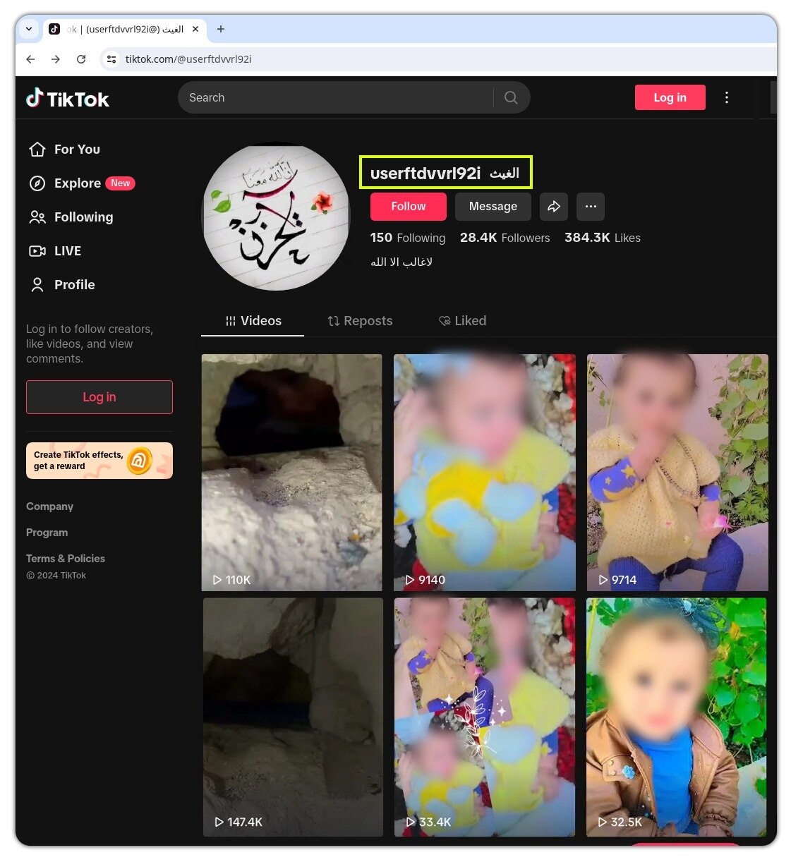 हमें इस अकाउंट पर इसी बच्ची के दीवार के सुराख से बाहर देखने के और भी वीडियो मिले. इनमें से एक वीडियो में बच्ची दीवार के दूसरी तरफ खेलती हुई दिखती है. टिकटॉक अकाउंट पर पोस्ट किये गए वीडियो का स्क्रीनशॉट नीचे देखा जा सकता है.