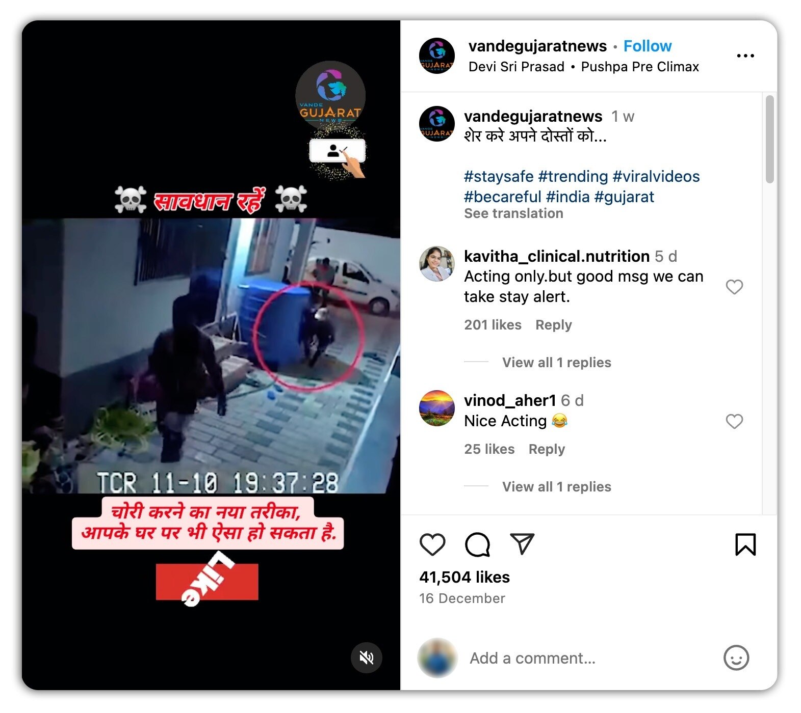 वीडियो के आखिर में एक शख्स मलयालम में बताता है कि ये वीडियो, केरल के कन्नूर शहर में उस वक्त हुई चोरी की एक घटना पर आधारित है. वीडियो के जरिये ये शख्स लोगों को ऐसे हमलों से खुद को बचाने की सीख देता है. साथ ही, ये शख्स खुद एक कराटे ट्रेनर है जो लोगों को सेल्फ डिफेंस सिखाता है.