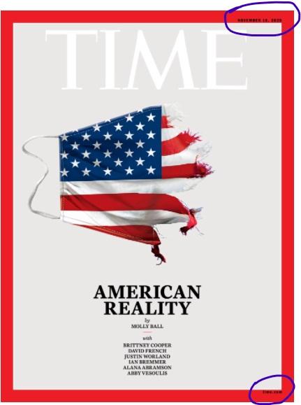 वायरल तस्वीर टाइम मैगजीन के लेआउट से मेल नहीं खाती. अगर हम टाइम के किसी भी असली कवर को गौर से देखें तो इसमें ऊपर दाहिने तरफ हर अंक के प्रकाशित होने की तारीख लिखी होती है; नीचे दाएं कोने में “time.com” लिखा रहता है. लेकिन वायरल तस्वीर में ये दोनों चीजें नहीं हैं.