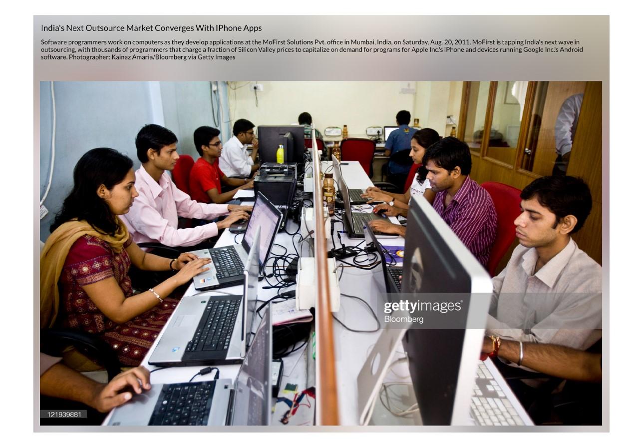 रिवर्स सर्च करने पर हमें ये फोटो "गेटी इमेजेज" वेबसाइट पर मिली. यहां दी गई जानकारी के अनुसार, ये तस्वीर मुंबई की एक सॉफ्टवेयर कंपनी 'मोफर्स्ट सॉल्यूशंस' के ऑफिस में 20 अगस्त 2011 को ली गई थी.