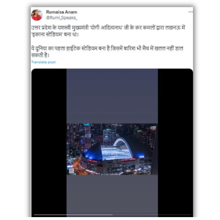 साफ है, कनाडा के मशहूर स्टेडियम के एक वीडियो को लखनऊ का इकाना स्टेडियम बताकर शेयर किया जा रहा है.