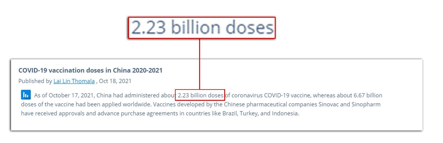 एक और डेटा वेबसाइट ‘स्टैटिस्टा’ भी इस आंकड़े की पुष्टि करती है कि चीन 17 अक्टूबर 2021 तक लगभग 223 करोड़ वैक्सीन लगा चुका था.