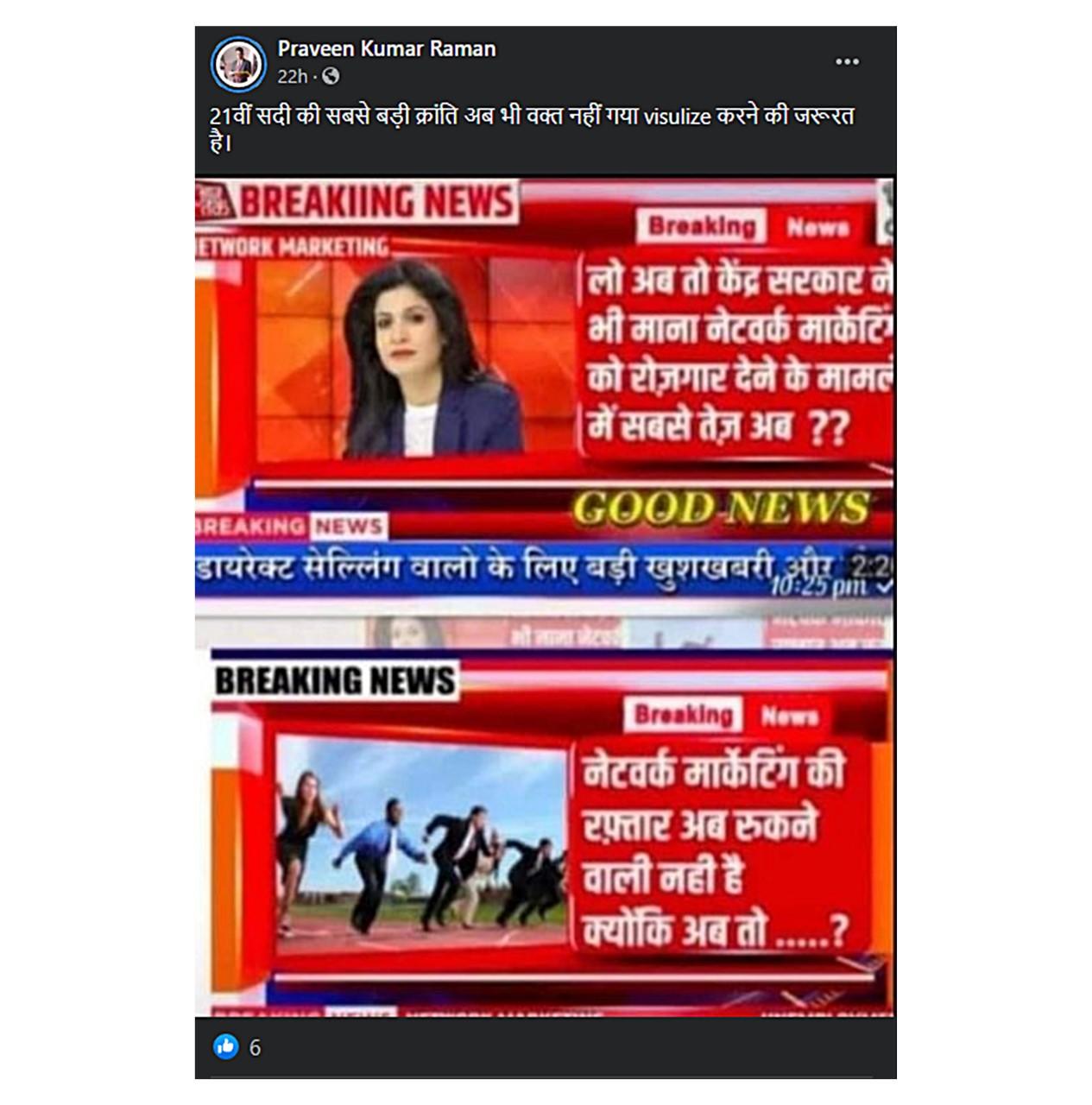 बहुत से लोग ऐसे फोटो भी शेयर कर रहे हैं जिन्हें देखकर लगता है कि ये किसी दूसरे न्यूज चैनल्स के स्क्रीनशॉट हैं. इनमें भी नेटवर्क मार्केटिंग की तारीफ की गई है.