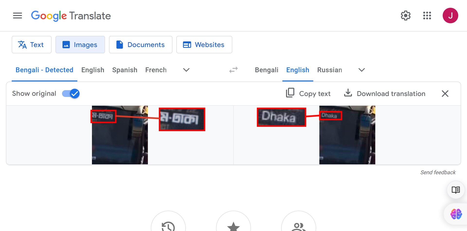 वीडियो को गौर से देखने पर इसमें एक बस पर बांग्ला भाषा में कुछ लिखा दिखता है. गूगल ट्रांस्लेट की मदद से इसका अनुवाद करने पर हमें पता लगा कि इस पर दरअसल, ढाका लिखा है. ये देखकर हमें लगा कि ये वीडियो बांग्लादेश का हो सकता है.