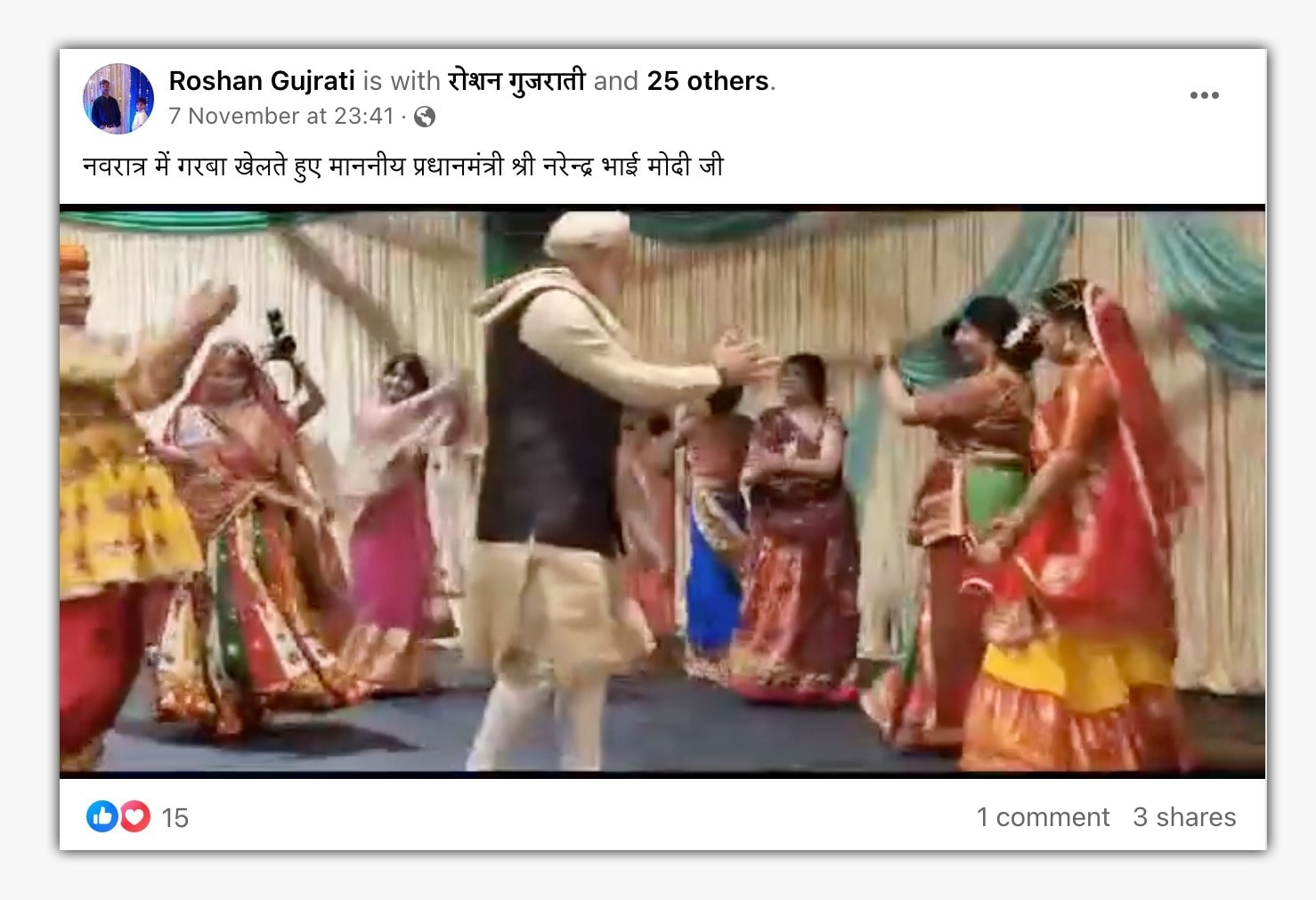 ऐसा कहा जा रहा है कि यह नवरात्र में गरबा खेलते हुए प्रधानमंत्री नरेंद्र मोदी का वीडियो है. इस दावे के साथ यह वीडियो फेसबुक और ट्विटर पर काफी वायरल हो रहा है. कई लोग इस बात को सही मान रहे हैं, वहीं कुछ दुविधा में हैं कि कहीं यह मोदी का डीपफेक वीडियो तो नहीं है. वायरल पोस्ट का आर्काइव्ड वर्जन यहां देखा जा सकता है.