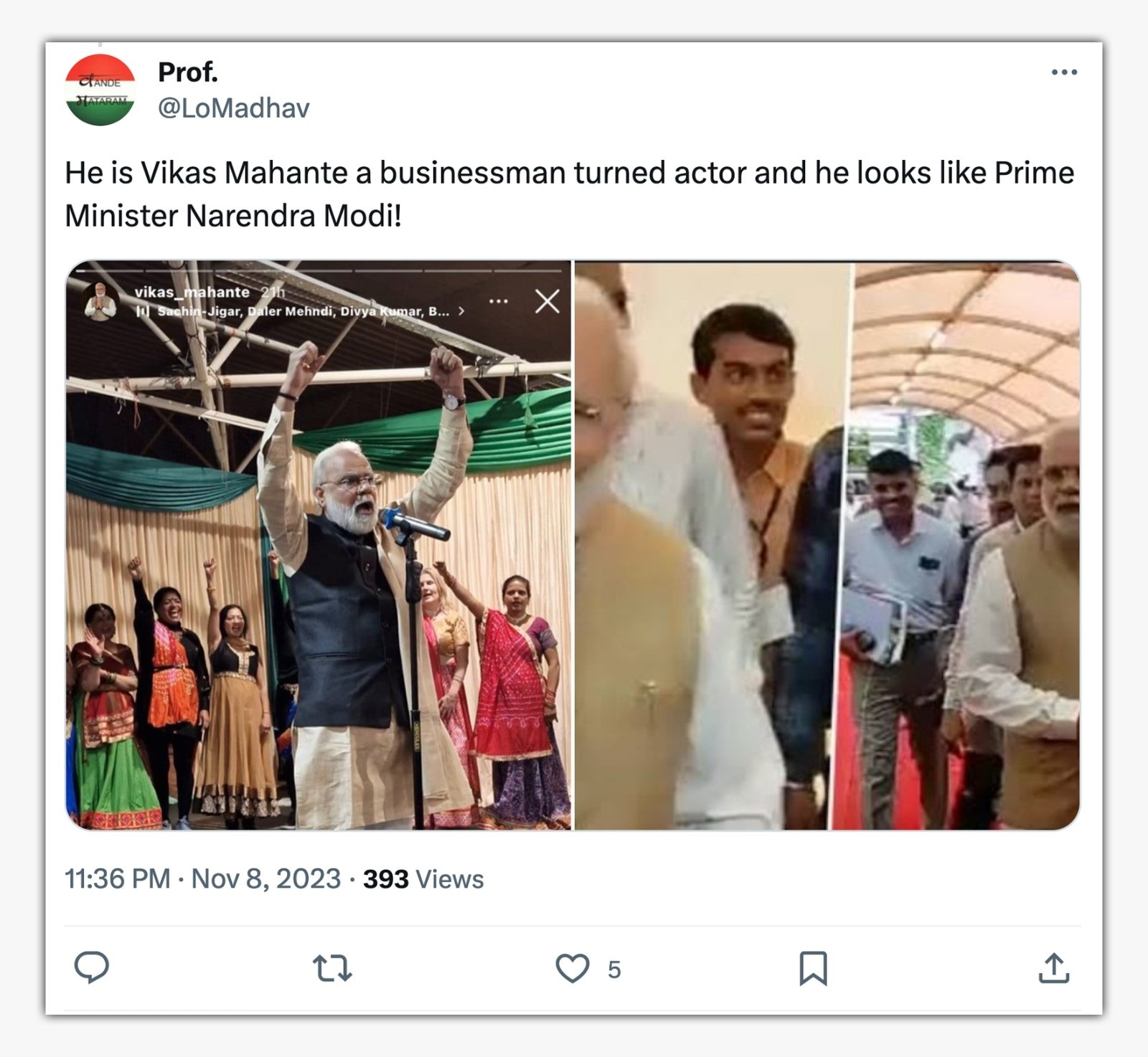 ट्विटर पर एक व्यक्ति ने इस वीडियो पर कमेंट किया है कि ये विकास महंते हैं, जो पीएम मोदी के जैसे देखने के कारण काफी प्रसिद्ध हैं. कमेंट में व्यक्ति ने विकास महंते की इंस्टाग्राम स्टोरी का एक स्क्रीनशॉट भी शेयर किया है.