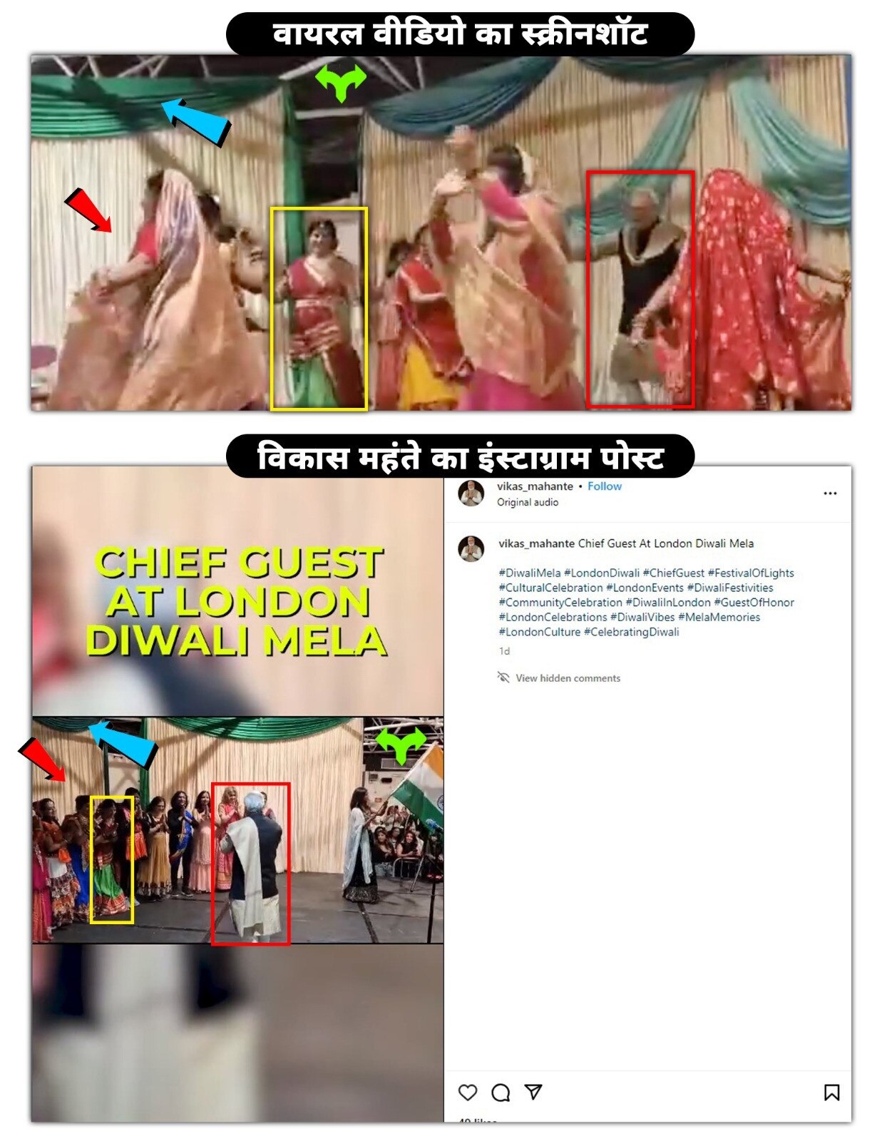 इसकी मदद से हमें विकास की इंस्टाग्राम प्रोफाइल भी मिल गई. प्रोफाइल पर हमें वायरल वीडियो तो नहीं मिला. लेकिन विकास ने 7 नवंबर, 2023 को एक वीडियो शेयर कर बताया था कि उन्हें लंदन के दिवाली मेले में चीफ गेस्ट के तौर पर बुलाया गया था.