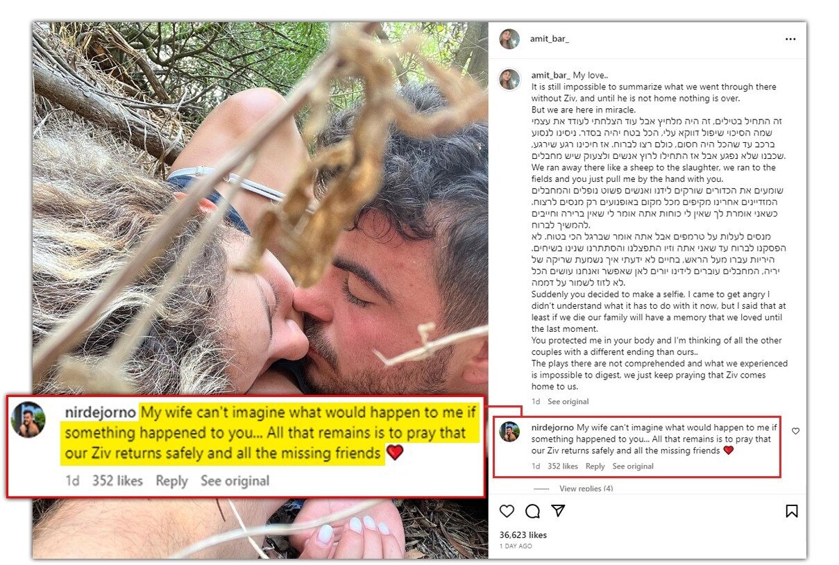 वायरल फोटो अमित ने खुद अपने इंस्टाग्राम हैंडल से शेयर की है और खौफ का पूरा मंजर हिब्रू भाषा में बताया है. इसके अलावा उन्होंने वायरल फोटो का भी जिक्र किया है. अमित ने लिखा है कि झाड़ियों में ये सेल्फी उनके प्रेमी नीर ने ली थी, जिसको लेकर वो काफी नाराज भी हुईं थी कि ऐसे खौफनाक समय पर ये फोटो खींचने का क्या मतलब है.