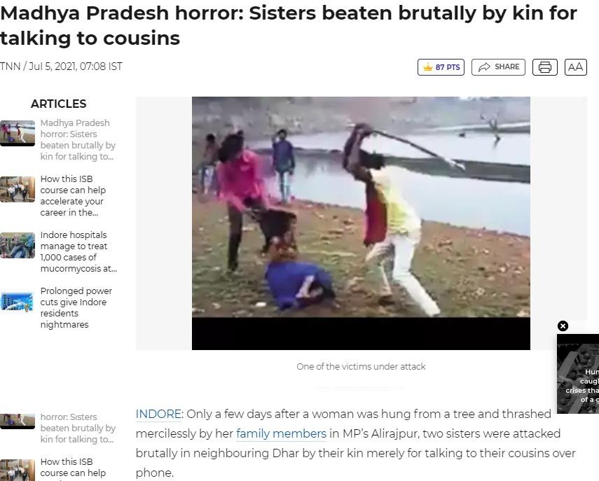 इन खबरों के मुताबिक अपने रिश्तेदारों से फोन पर बात करने के आरोप में दो आदिवासी चचेरी बहनों की उनके ही परिवार के लोगों ने पिटाई की थी. इन रिपोर्ट्स को यहां, यहां और यहां देखा जा सकता है.