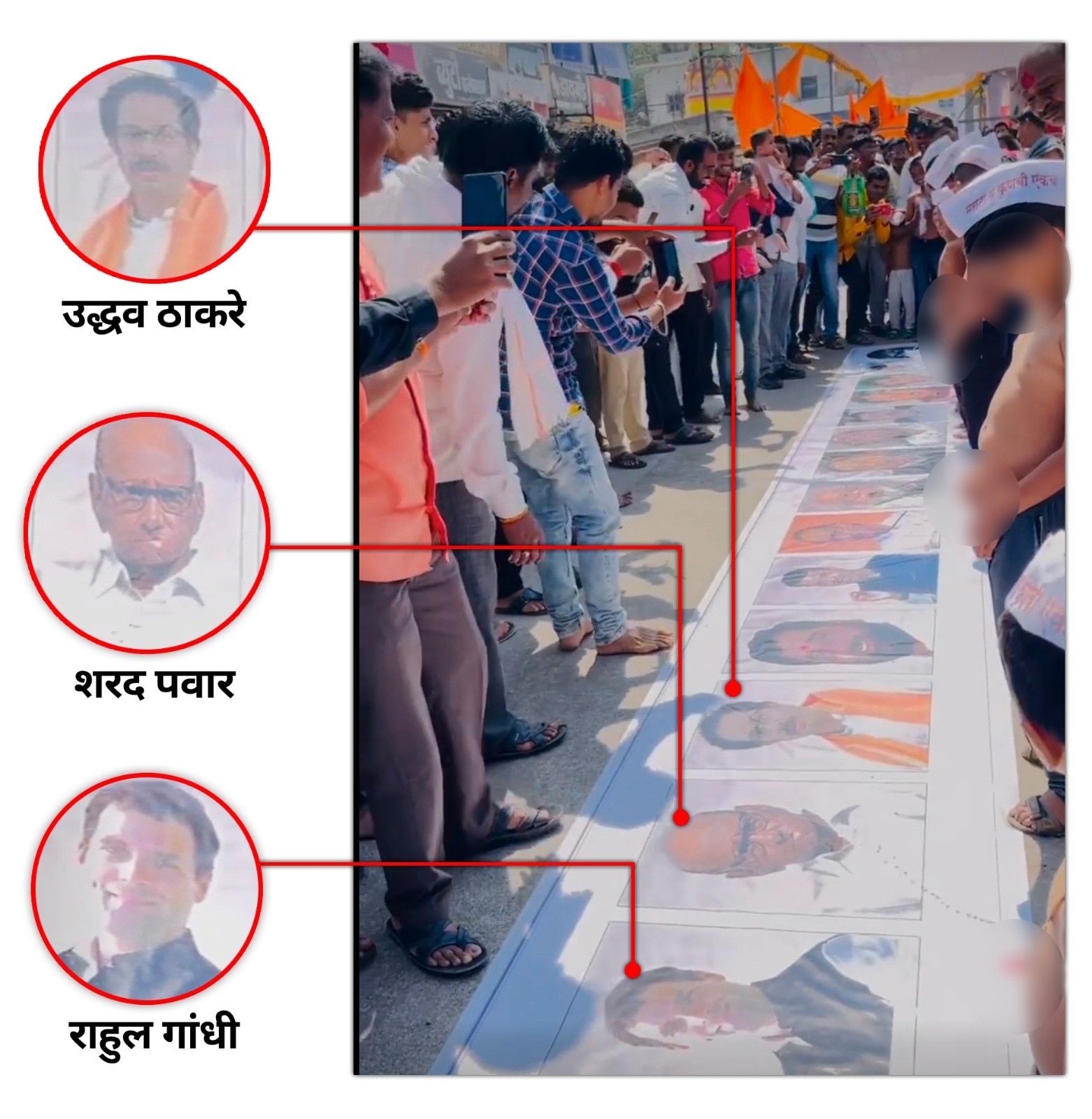 अगर ध्यान से देखें तो इनमें शुरुआत में कांग्रेस नेता राहुल गांधी, एनसीपी प्रमुख शरद पवार, शिवसेना (यूबीटी) प्रमुख उद्धव ठाकरे के पोस्टर भी देखे जा सकते हैं. इसके अलावा बैनर के दूसरी तरफ महाराष्ट्र कांग्रेस अध्यक्ष नाना पटोले और कांग्रेस नेता अशोक चव्हाण की तस्वीरें भी नजर आ रही हैं.