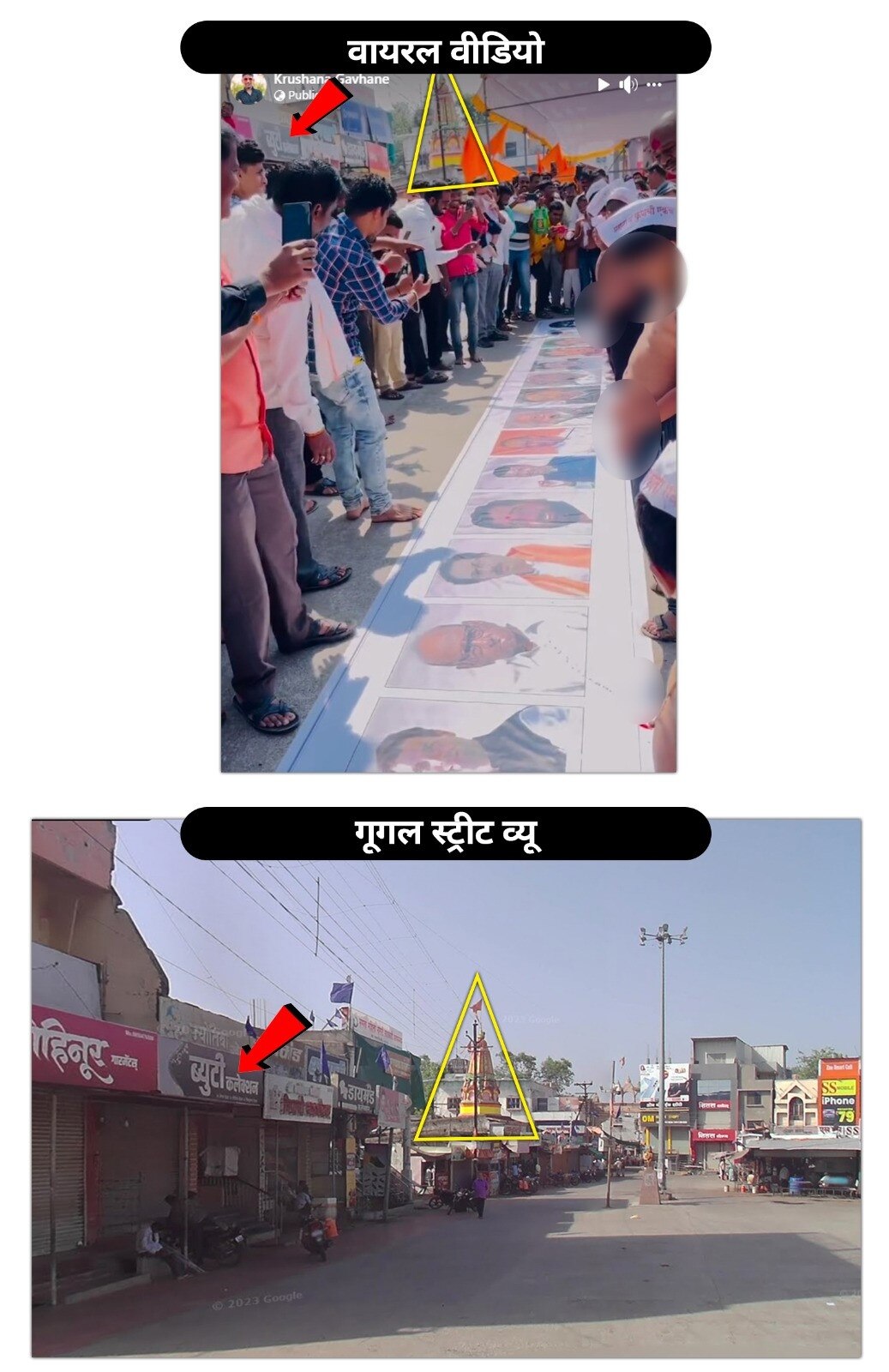 गूगल मैप्स के स्ट्रीट व्यू की मदद से हमने इस बात की भी पुष्टि की कि वायरल वीडियो गेवराई के शास्त्री चौक का ही है.