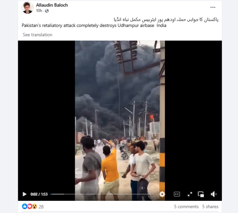 लेकिन वीडियो राजस्थान का निकला जहां हनुमानगढ़ में 8 मई को एक केमिकल फैक्ट्री में आग लग गई थी. हालांकि, भारत की प्रेस कॉन्फ्रेंस में बताया गया था कि पाकिस्तान ने उधमपुर, पठानकोट और भटिंडा एयरबेस को निशाना बनाने की कोशिश की थी.