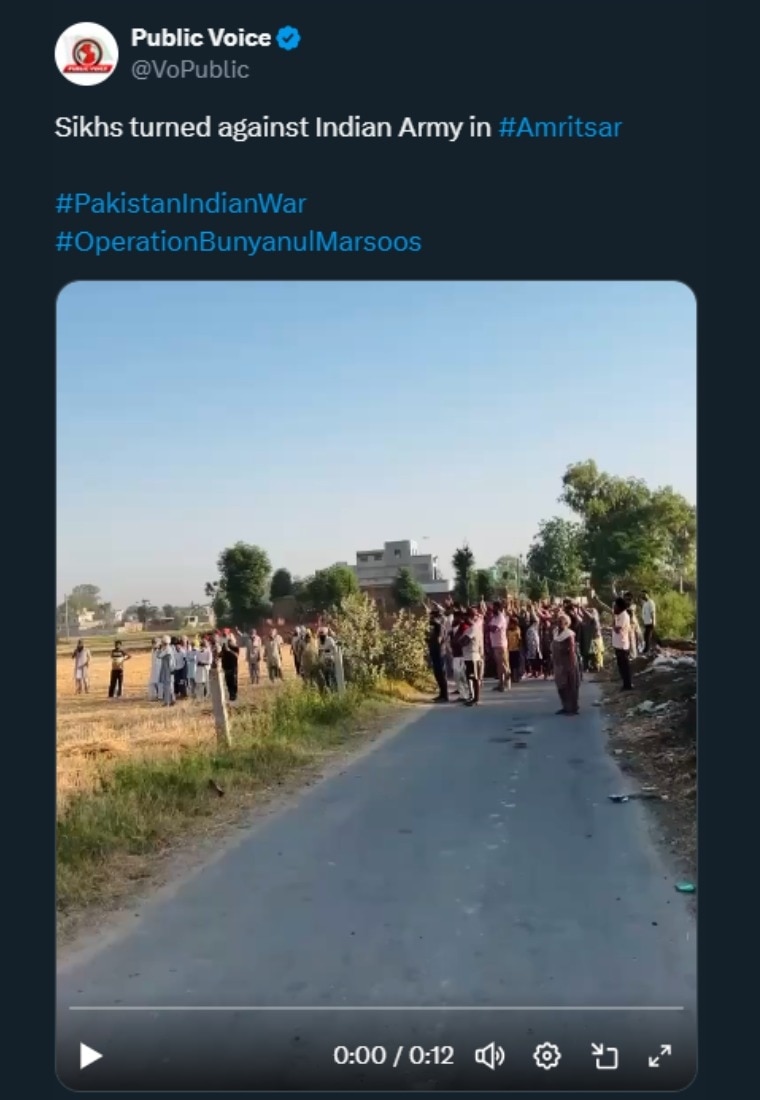 ये भी कहा गया कि अमृतसर में सिख समुदाय के लोग भारतीय सेना के खिलाफ खड़े हो गए. लेकिन दावे के साथ जो वीडियो वायरल हुआ वो 26 अप्रैल का है और लुधियाना के एक गांव का है. वहां एक बायो गैस प्लांट लगाने के दौरान पुलिस और प्रदर्शनकारियों के बीच झड़प हो गई थी. ये उसी समय का ये वीडियो है.