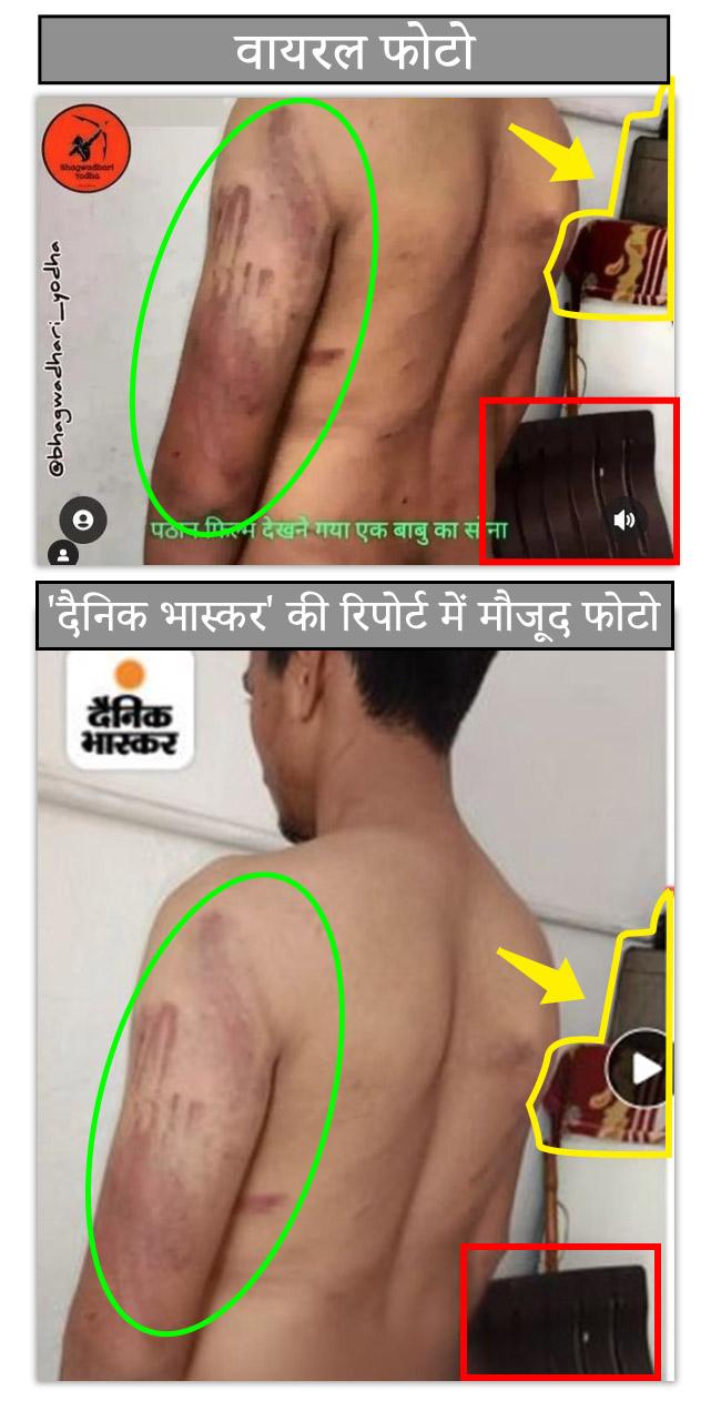 'दैनिक भास्कर' की इस रिपोर्ट में इस्तेमाल की गई तस्वीर की तुलना वायरल फोटो से करने पर साफ पता लगता है कि ये दोनों एक ही हैं.