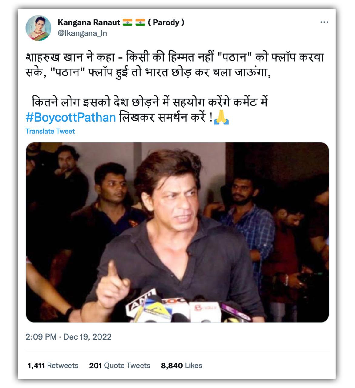 इसी बीच सोशल मीडिया पर एक ऐसा पोस्ट वायरल हो रहा है जिसमें शाहरुख खान के हवाले से कहा गया है कि अगर 'पठान' फ्लॉप होती है तो वो भारत छोड़ कर चले जाएंगे.
