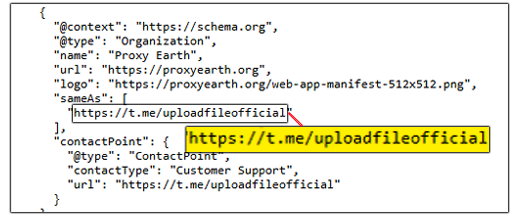 'proxyearth.org' वेबसाइट के कोड को गौर से देखने पर हमें “@uploadfileofficial” नाम के एक टेलीग्राम चैनल का लिंक मिला. इस चैनल पर हमें “@rakeshxofficial” नाम के एक दूसरे टेलीग्राम चैनल का लिंक मिला.