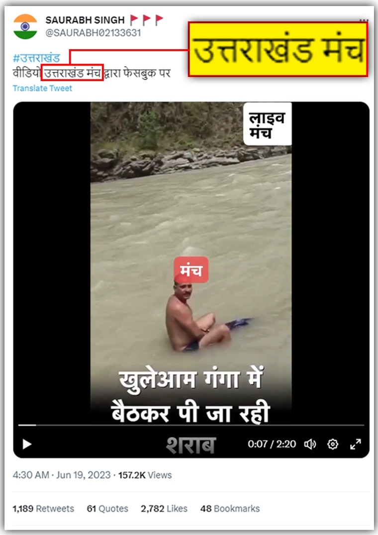 हमें एक ऐसा ट्वीट मिला जिसमें इस वीडियो का क्रेडिट 'उत्तराखंड मंच' नाम के फेसबुक पेज को दिया गया है.