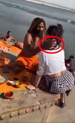 सोशल मीडिया पर एक वीडियो तेजी से वायरल हो रहा है जिसमें एक विदेशी महिला के साथ घाट पर बैठे एक साधु को किस करते हुए देखा जा सकता है. वीडियो को सच्ची घटना मानकर कई लोग इस महिला और बाबा पर अश्लीलता फैलाने का आरोप लगा रहे हैं.