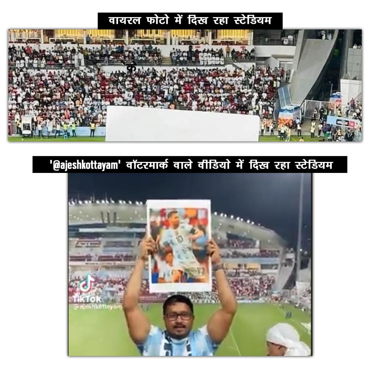 ऐसा कहने वाले लोग सबूत के तौर पर एक तस्वीर शेयर कर रहे हैं. तस्वीर किसी खेल के स्टेडियम की है जिसमें दर्शक दीर्घा में एक शख्स चंद्रशेखर आजाद 'रावण' का पोस्टर दिखा रहा है. इस शख्स ने अर्जेंटीना की फुटबॉल टीम की जर्सी पहन रखी है. स्टेडियम दर्शकों से भरा हुआ है.