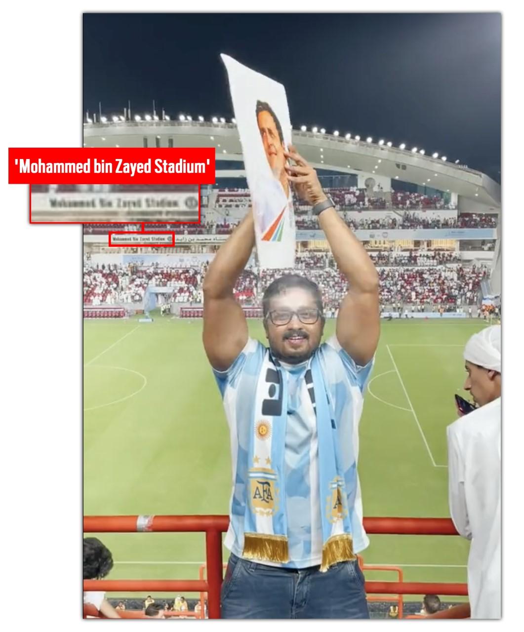 राहुल गांधी का पोस्टर अबू धाबी में 16 नवंबर को अर्जेंटीना और यूएई के बीच हुए एक फ्रेंडली मैच में दिखाया गया था. अब हम आपको बताते हैं कि हमें इस बात का पता कैसे लगा.