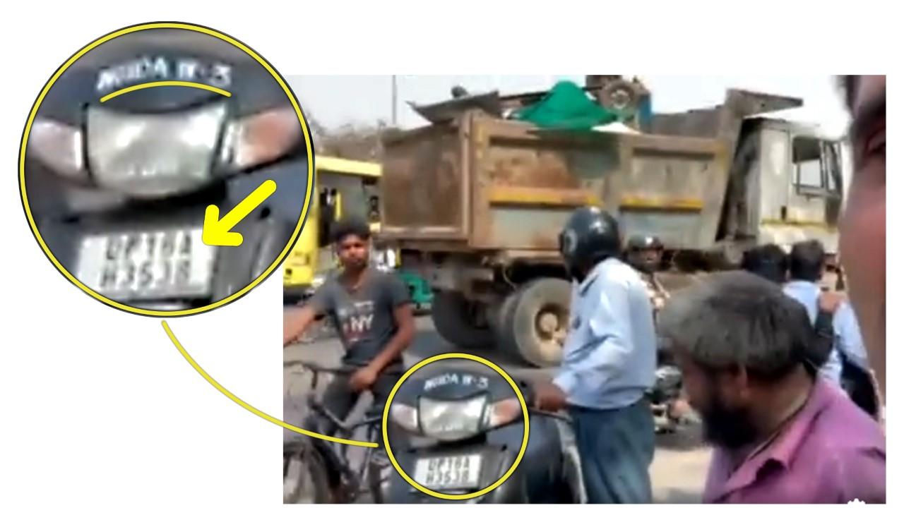 वायरल फोटो में गौर से देखने पर इसमें एक स्कूटर देखा जा सकता है जिसकी नंबर प्लेट में ‘UP’ लिखा हुआ है. साथ ही, एक जगह ‘NOIDA’ भी लिखा है. इससे हमें लगा कि ये वीडियो यूपी के नोएडा शहर का हो सकता है.
