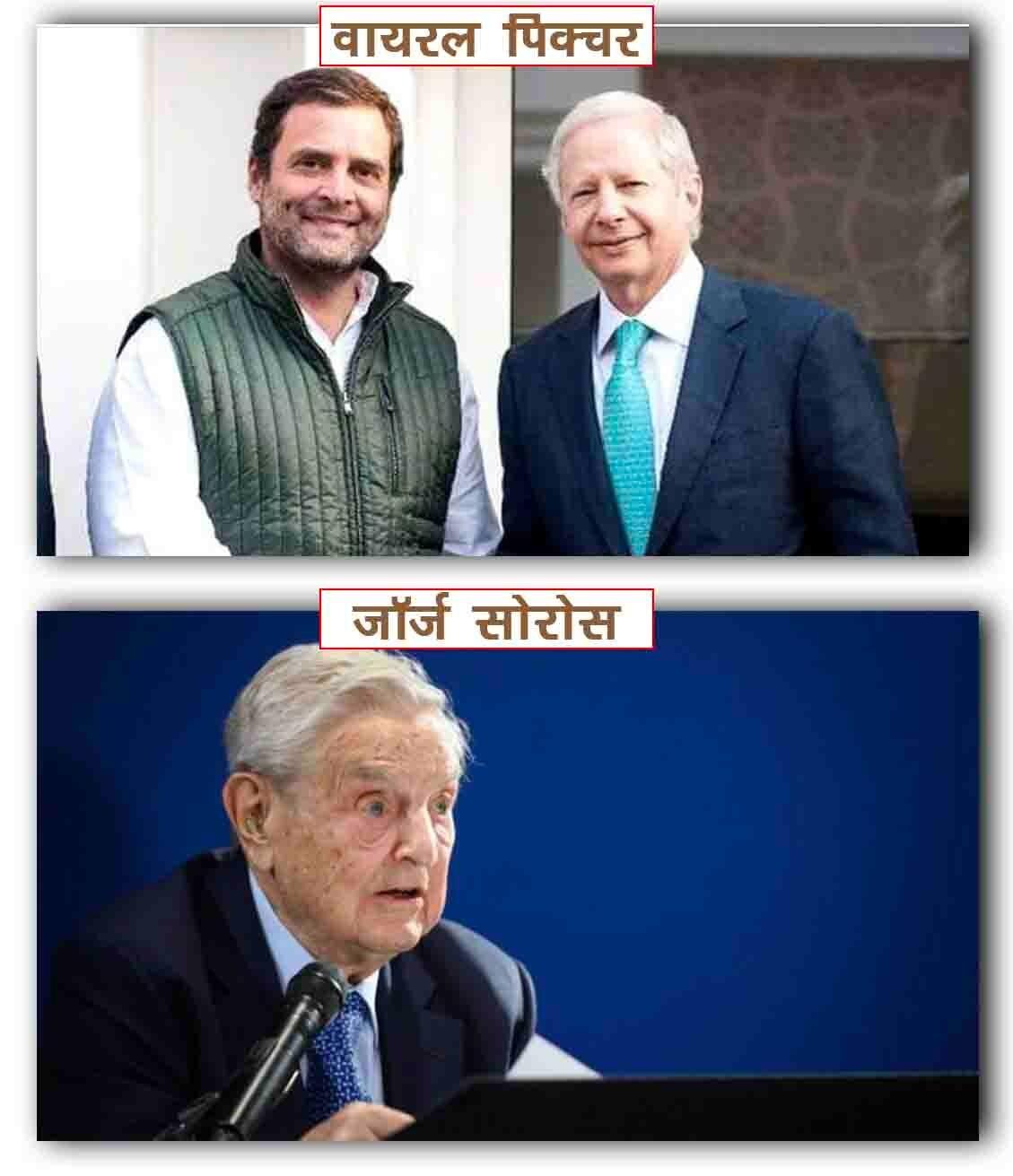 इस हंगामे के बीच सोशल मीडिया पर सोरोस के साथ जोड़ते हुए कांग्रेस नेता राहुल गांधी की एक तस्वीर वायरल हो रही है. इस तस्वीर में राहुल किसी शख्स के साथ खड़े दिखाई दे रहे हैं. कुछ लोग इस तस्वीर को शेयर करते हुए राहुल के साथ खड़े शख्स को जॉर्ज सोरोस बता रहे हैं.