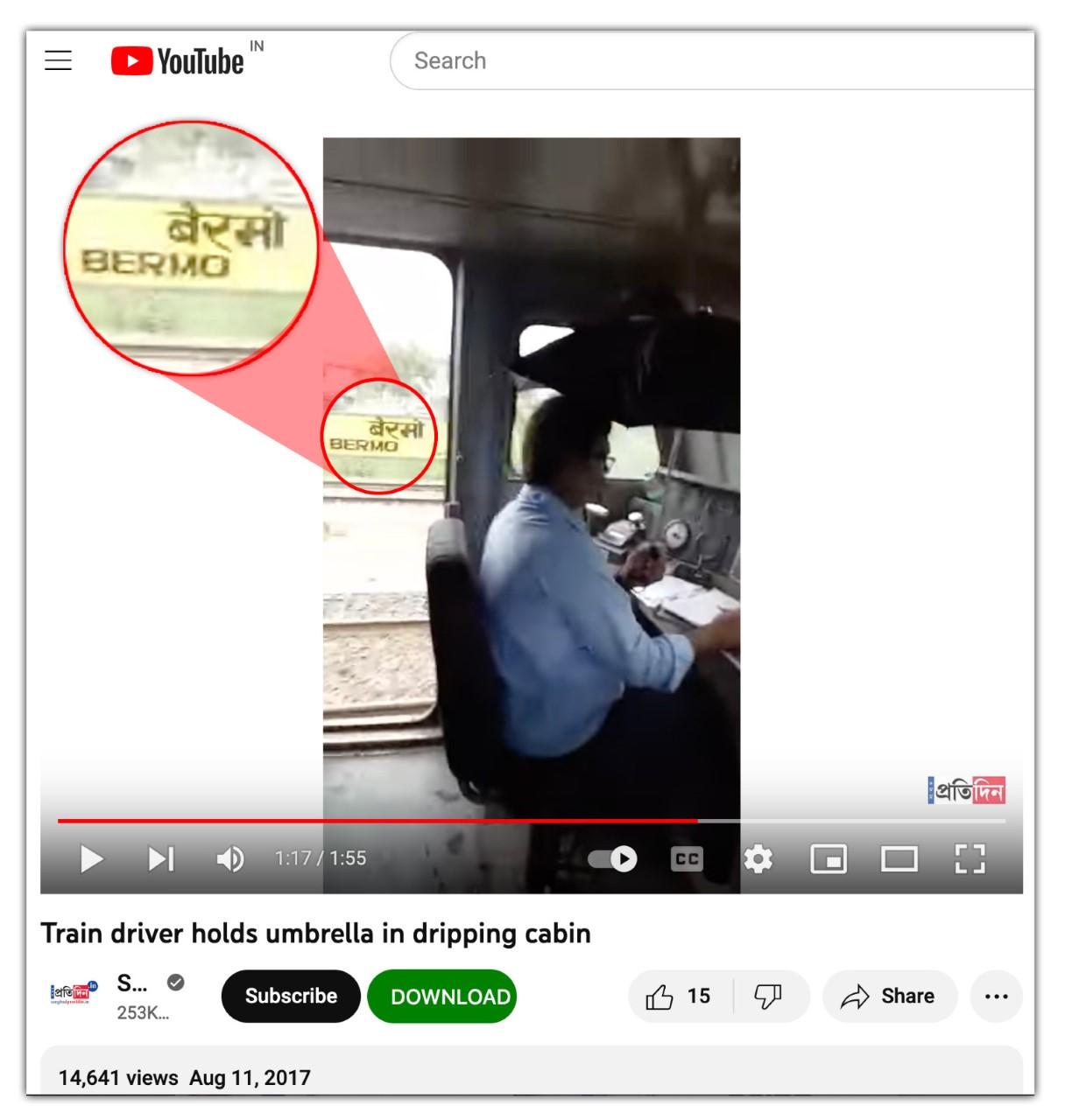 वीडियो में एक शख्स बता रहा है कि छाता पकड़कर बैठे ये शख्स चंद्रपुर का लोको पायलट बी के मण्डल हैं. साथ ही, वीडियो में दिख रहे रेलवे स्टेशन पर एक जगह 'बेरमो' लिखा हुआ है. चन्द्रपुर और बेरमो रेलवे स्टेशन, ये दोनों ही झारखंड के बोकारो जिले में स्थित हैं.
