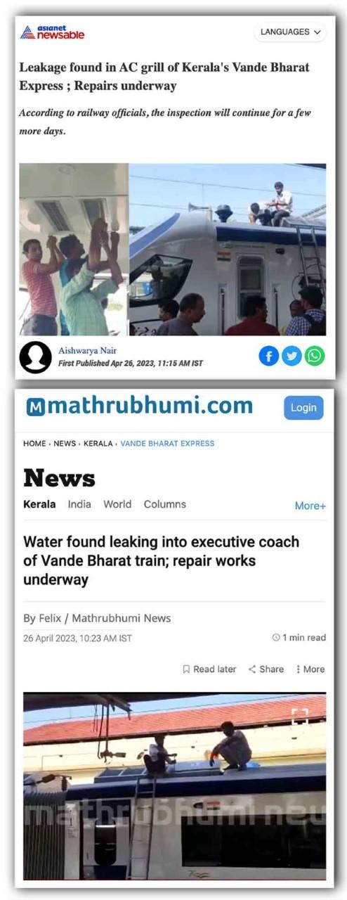 दरअसल प्रधानमंत्री नरेंद्र मोदी ने 25 अप्रैल, 2023 को तिरुवनंतपुरम और कासरगोड के बीच जाने वाली केरल की पहली वंदे भारत एक्सप्रेस का उद्घाटन किया था. लेकिन, पहली यात्रा के दौरान ही इस ट्रेन की छत से पानी लीक होने की खबर आ गई.
