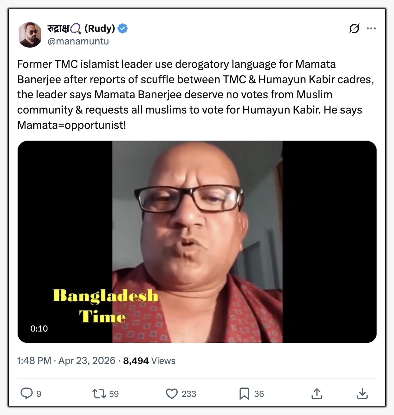दावा किया जा रहा है कि इस शख्स ने मुसलमानों से हुमायूं कबीर को वोट देने की अपील करते हुए कहा कि ममता बनर्जी मुस्लिम वोटों की हकदार नहीं हैं.