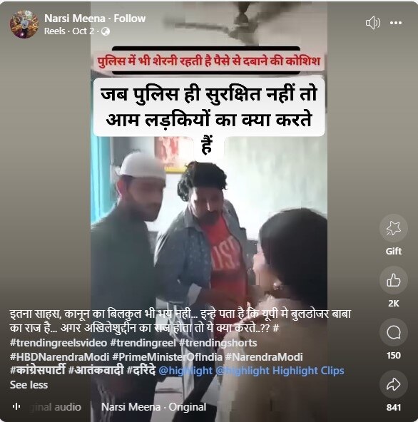 फेसबुक पर एक व्यक्ति ने लिखा, “इतना साहस, कानून का बिलकुल भी भय नही...इन्हें पता है कि यूपी मे बुलडोजर बाबा का राज है... अगर अखिलेशुद्दीन का राज होता तो ये क्या करते?” इस पोस्ट का आर्काइव्ड वर्जन यहां देखा जा सकता है.