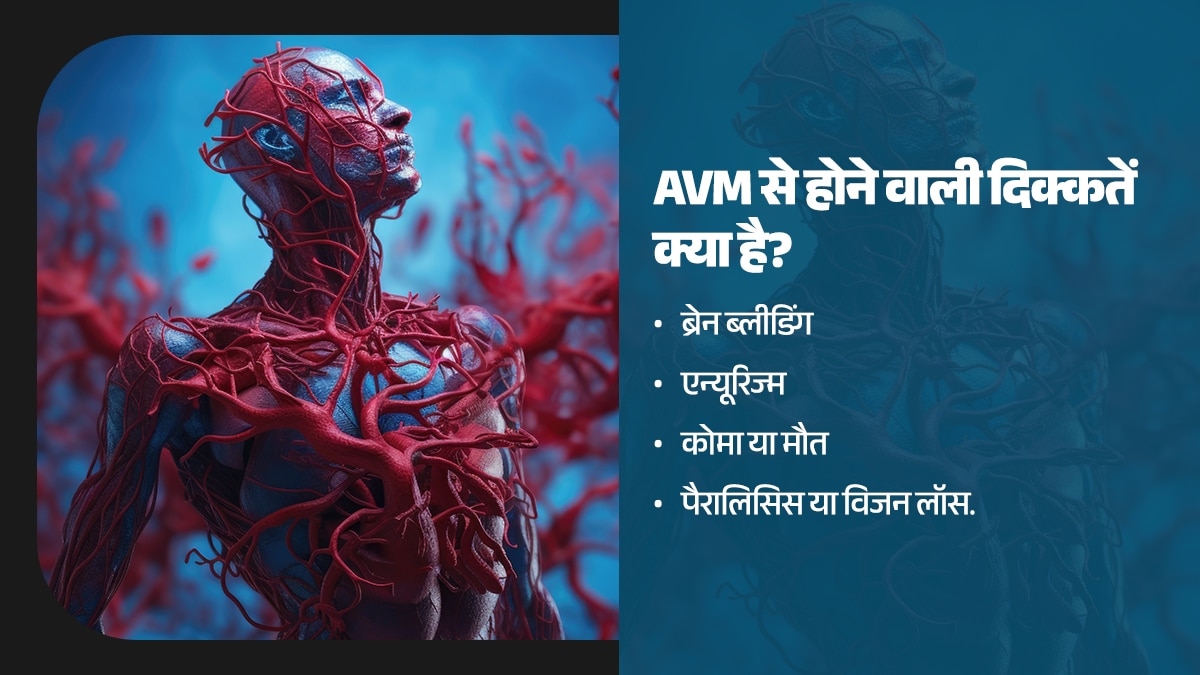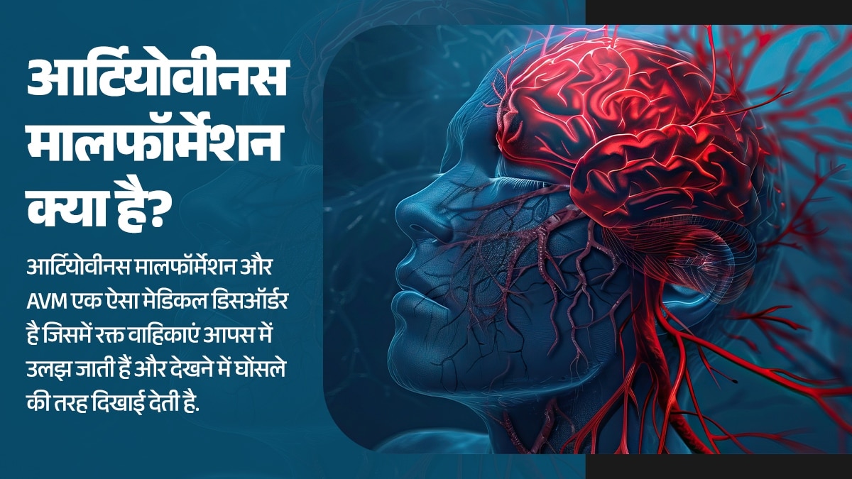 आर्टियोवीनस मालफॉर्मेशन और AVM एक ऐसा मेडिकल डिस्ऑर्डर है जिसमें रक्त वाहिकाएं आपस में उलझ जाती हैं और देखने में घोंसले की तरह दिखाई देती हैं. ब्रेन को ब्लड सप्लाई करने वाली आर्टरीज और ब्रेन से ब्लड को बाहर निकालने वाली नसें आपस में उलझ जाती हैं.