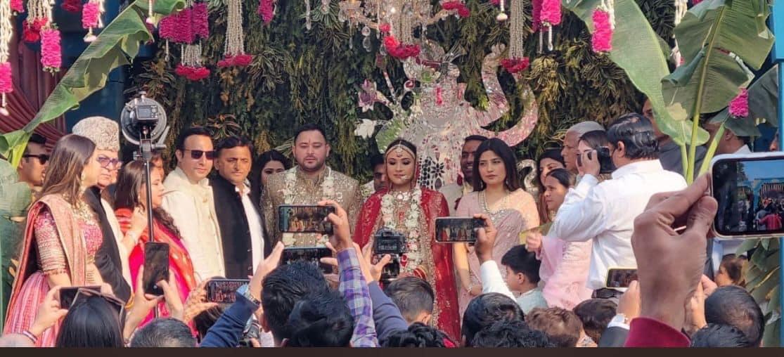 तेजस्वी और राजेश्वरी यादव का शादी समारोह दिल्ली के एक फॉर्म हाउस में हुआ. यह फॉर्म हाउस तेजस्वी यादव की बहन मीसा भारती का है. इस शादी कार्यक्रम में गिने-चुने लोग ही इनवाइट किए गए थे. तेजस्वी ने मंगलवार शाम को राजेश्वरी से सगाई की और आज दोनों की शादी हुई. शादी में पूर्व मुख्यमंत्री अखिलेश यादव अपनी पत्नी डिंपल यादव के साथ पहुंचे.