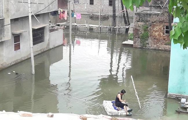 बारिश के पानी मे डूब गए मोहल्ले