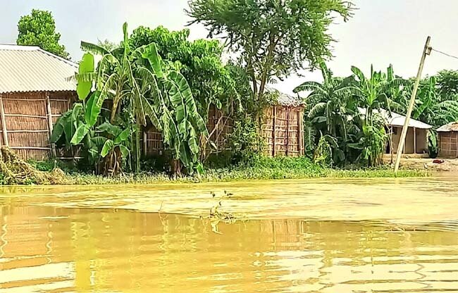 कोसी के पानी में डूबा गांव का कुछ हिस्सा