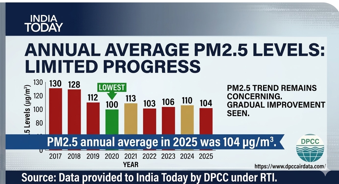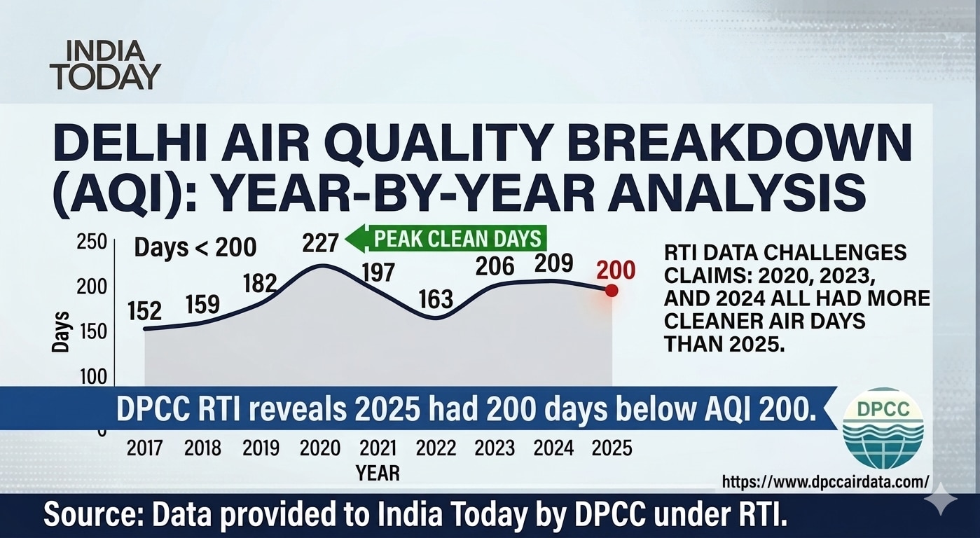 दिल्ली सरकार ने दावा किया था कि राजधानी में 2025 में आठ सालों में सबसे स्वच्छ हवा दर्ज की गई. लेकिन दिल्ली प्रदूषण नियंत्रण समिति (DPCC) से इंडिया टुडे के एक आरटीआई के जवाब ने इस दावे पर सवाल खड़े कर दिए हैं.