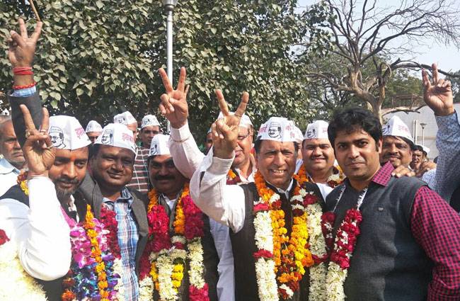 दिल्ली की मंडी समिति के चुनावों में आम आदमी पार्टी के समर्थित उम्मीदवारों ने 17 में से 14 सीटों पर जीत दर्ज की है. इस सफलता को AAP नेताओं ने नोटबंदी से जोड़ने में देरी न करते हुए मोदी सरकार को निशाने पर लिया. जीत दर्ज करने के बाद तमाम उम्मीदवारों ने श्रम मंत्री गोपाल राय से मुलाकात भी की.