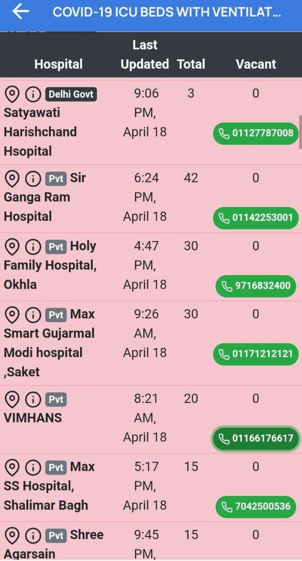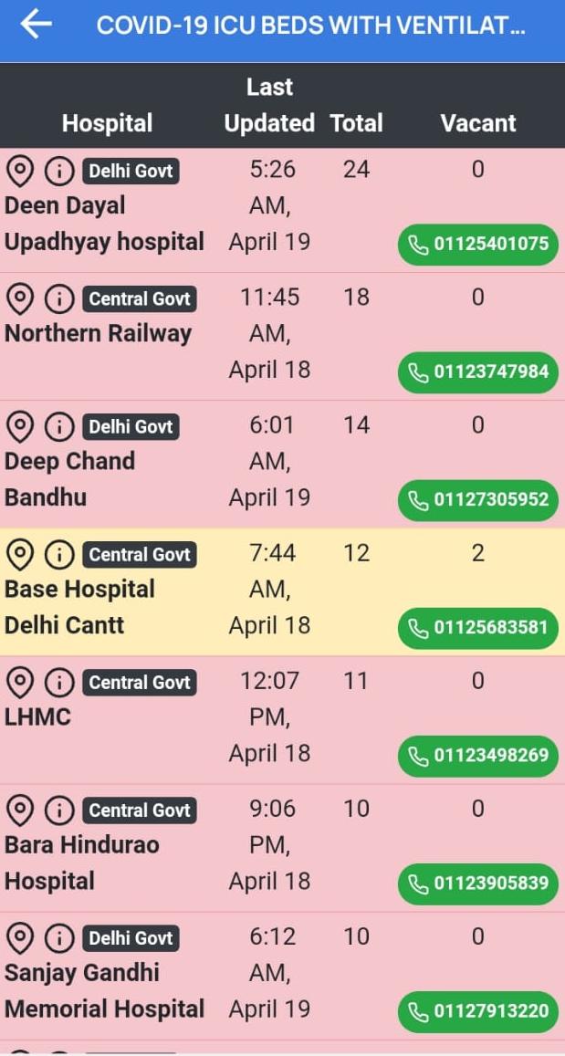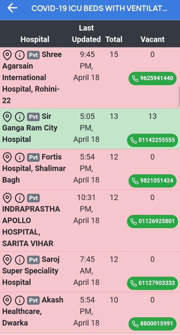 इस ऐप के मुताबिक, देश के सबसे बड़े अस्पताल एम्स में भी सिर्फ 4 ही आईसीयू बेड विद वेंटिलेटर इस वक्त मौजूद हैं. इनके अलावा बहुत कम ही ऐसे अस्पताल हैं, जहां पर ये सुविधा बची है यही कारण है कि दिल्ली के कई अस्पतालों के बाहर मरीज़ इलाज के लिए तड़प रहे हैं.
