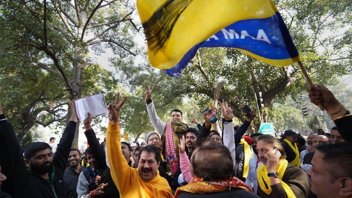 आम आदमी पार्टी के दफ्तर में खुशी का माहौल